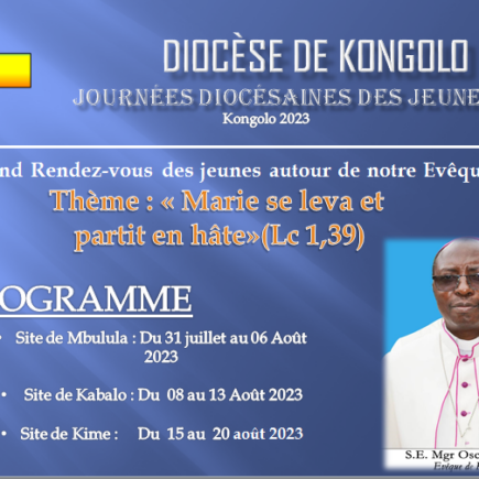 Dans le but de faire vivre à un grand nombre de jeunes ces événements diocésains que sont les journées diocésaines des jeunes, Son Excellence Mgr Oscar NGOY a dû braver les difficultés de la route pour se rendre à la Paroisse Marie- Reine de Kime, dans le territoire de Kabongo, afin de rencontrer les jeunes …